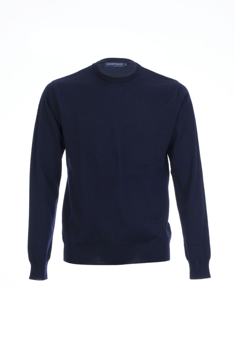 Den klassiske merino strik trøje med rund hals fra Hanstholm, her i navy.
