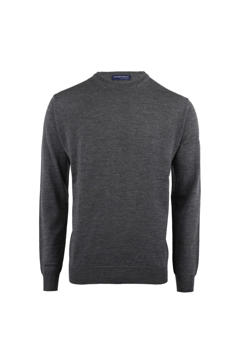 Den klassiske merino strik trøje med rund hals fra Hanstholm, her i koksgrå.